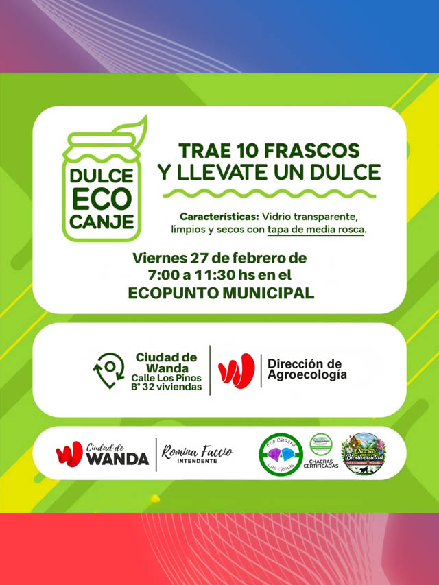 AGENCIA MISIONES.UNO | La Municipalidad de Wanda llevará adelante este viernes 27 de febrero una nueva jornada de Ecocanje en el Ecopunto, con el objetivo de promover el reciclaje y el cuidado del ambiente en la comunidad.